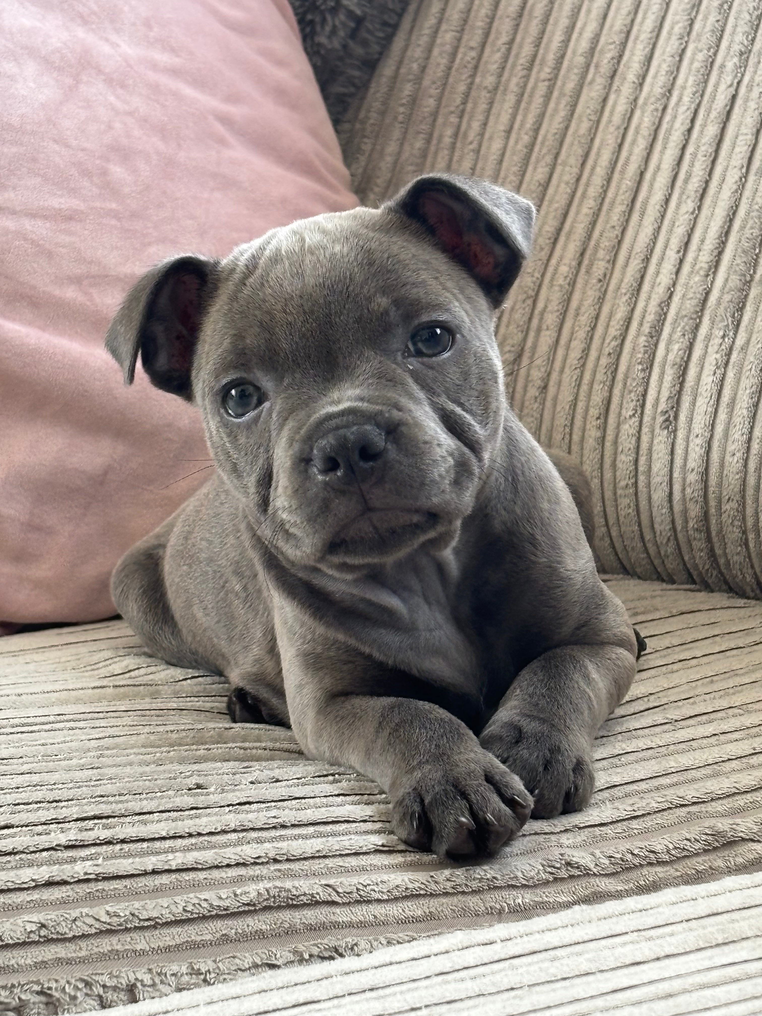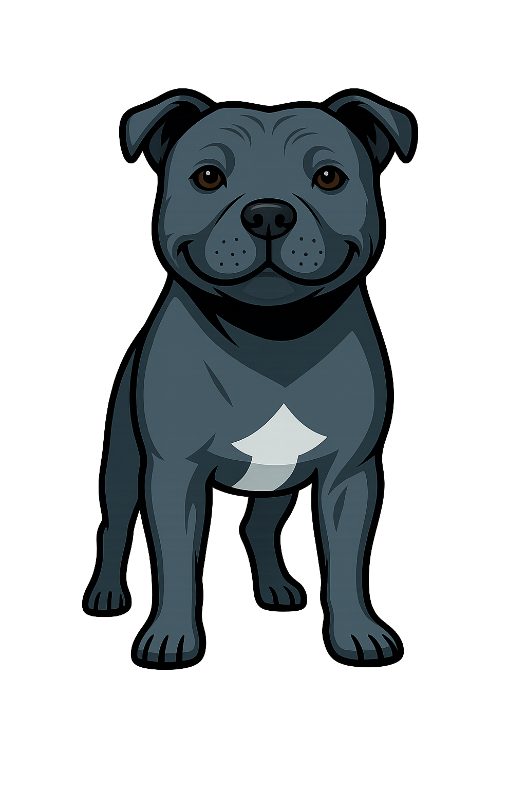 Skye is our 7-month-old blue Staffordshire Bull Terrier and the inspiration behind Staffy Corner. Loved by almost 30,000 followers across social media, she’s the heart behind every design. We’re real Staffy owners creating products for people who adore the breed as much as we do.